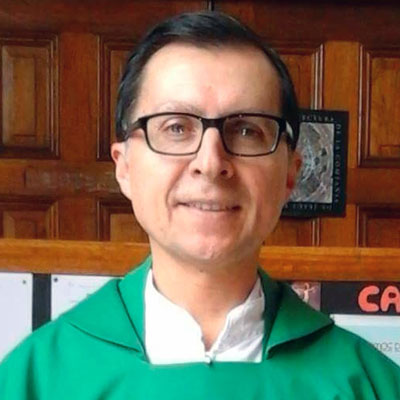 Atiende por cita, llamando previamente al despacho parroquial. Celebra la eucaristía de lunes a viernes a las 6.00 p.m. y los domingos a las 12.00 del mediodía.